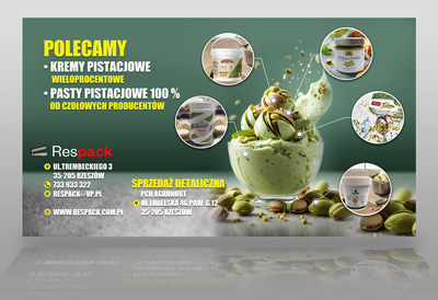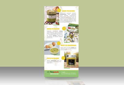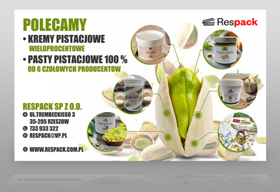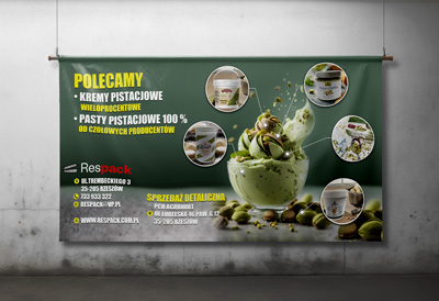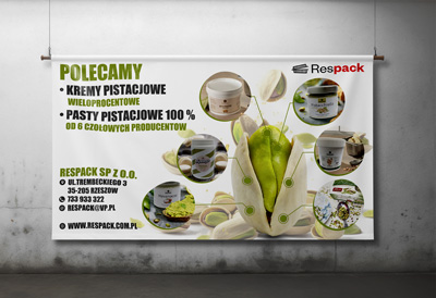 Banery reklamowe (1800x1000mm oraz 1500x900mm) - tekstylne zaprojektowane dla firmy Respack. Projekty przygotowane na podany przez klienta wymiar. Grafika dopasowana do opracowanych wcześniej materiałów - ulotek oraz broszury / katalogu. Całość przesłana do klienta w formie pliku tiff (200 dpi).