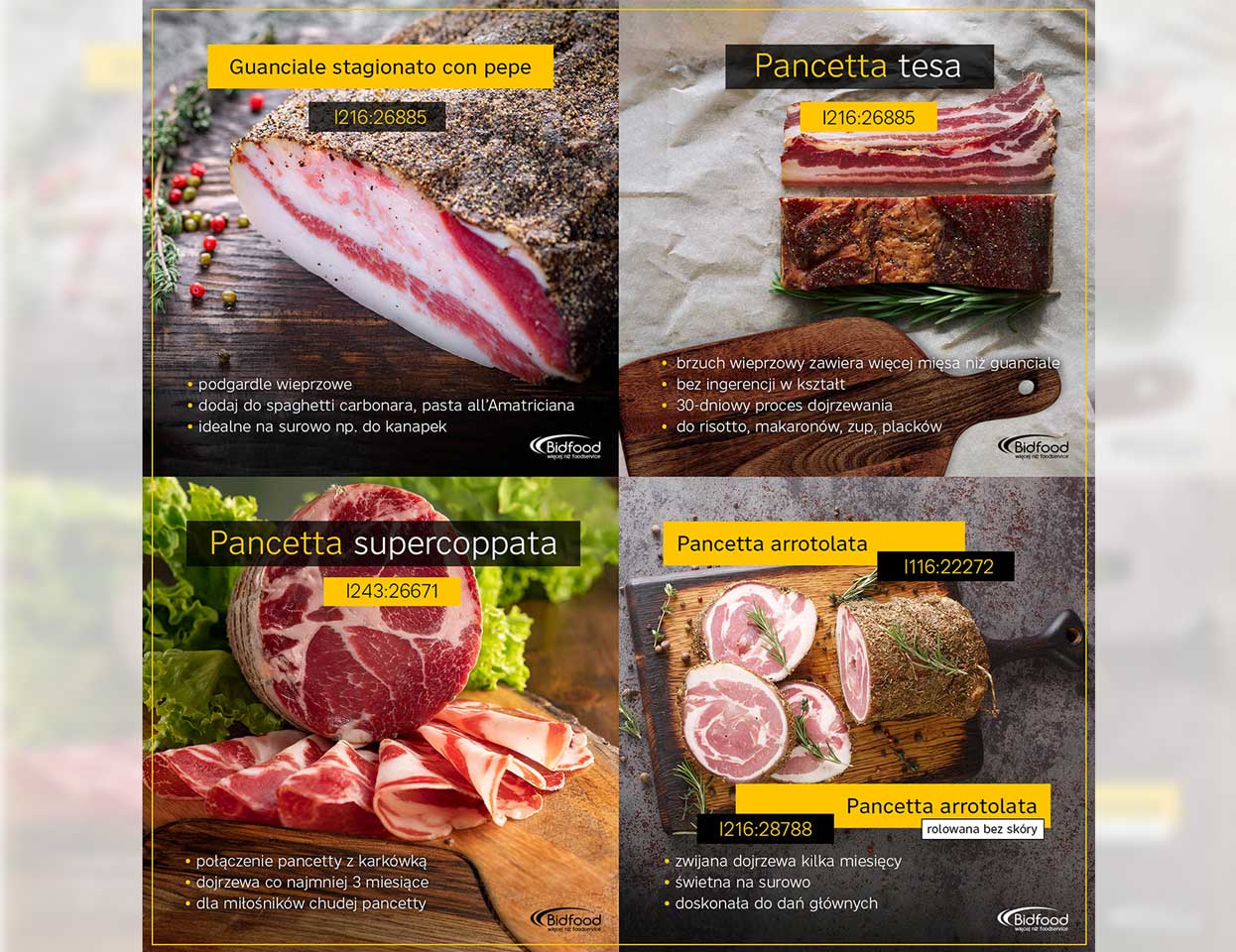 Wybrane grafiki - posty na facebook zaprojektowane w trakcie pracy w firmie Bidfood (Farutex) - głównie tematyka jedzonka.