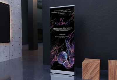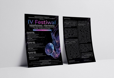 Projekt plakatu - ta część zlecenia była pierwsza. Na bazie zaakceptowanego plakatu powstała całą reszta materiałów promovyjnych - ulotki, zaproszenia (zmiejscem do wpisania danych gości) oraz rollup. Wszystkie projekty opracowanie pod druk wg. wykrojników / szablonów z drukarni przesłanych przez klienta (do czego nie było szablonów - standardowe wytyczne). Miało być inaczej, nowocześnie i nietuzinkowo... Całość wyszła na tyle dobrze, że klient podobno polecił mnie dalej.