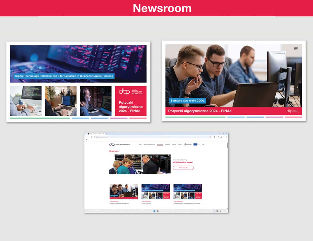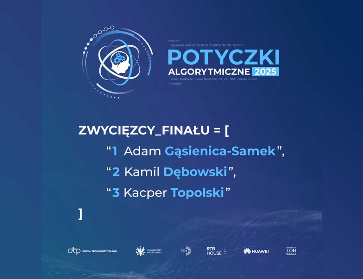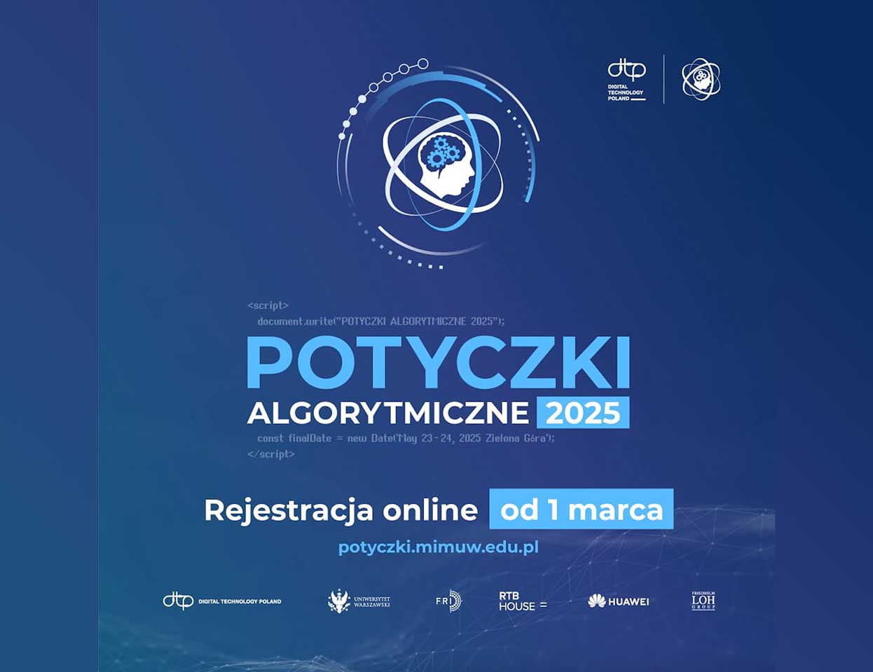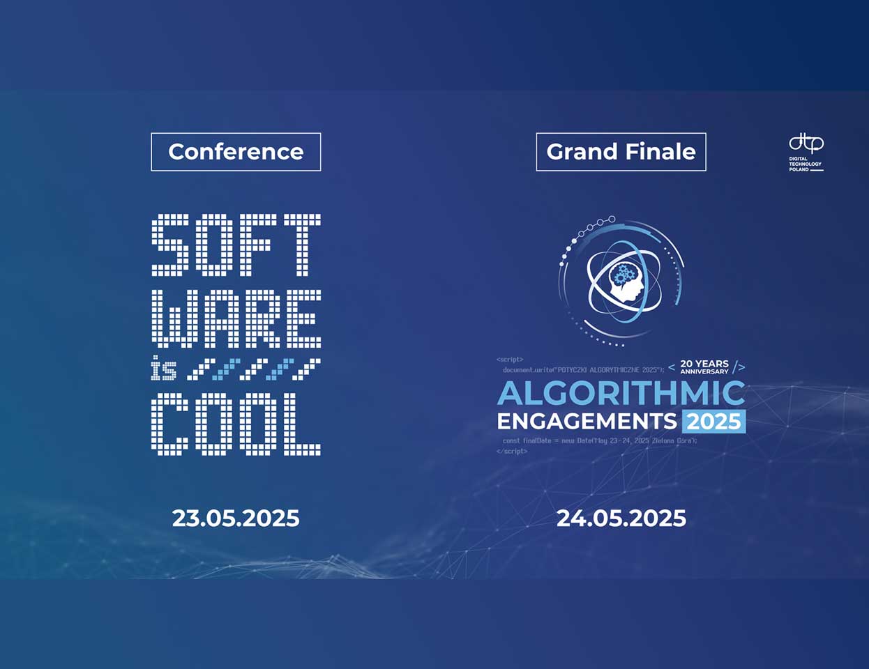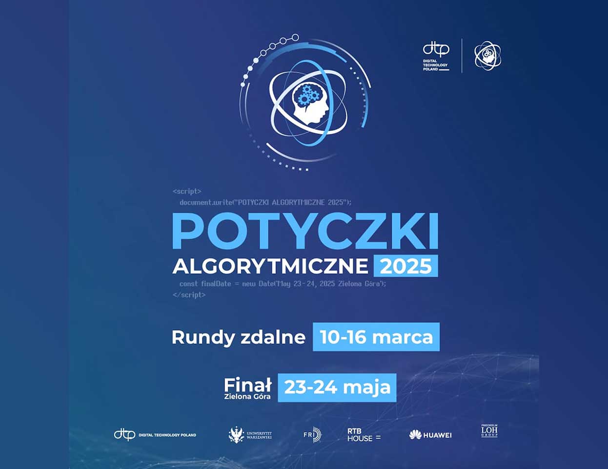 Opracowane tegorocznej (2025) "identyfikacji / oprawy wizualnej" dla ogólnopolskiego konkursu programistycznego "Potyczki Algorytmiczne". W tym roku logo potyczek algorytmicznych umieściłem w kole symbolizującym pasek postępu, ładowania. Jako e jest to konkurs programistyczny do logo dodałem niewielki akcent programistyczny - nazwa oraz data i lokalizacja konkursu zapisane w kodzie JavaScript. W tle grafiki delikatna falująca siatka - symbolizująca sieć neuronową - takie nawiązanie do modnego aktualnie AI. Na podstawie główne grafiki (po lewej) opracowane zostały pozostałe materiały (plakaty, rollupt, podkłądki pod mysze, posty na Facebook oraz instagram).