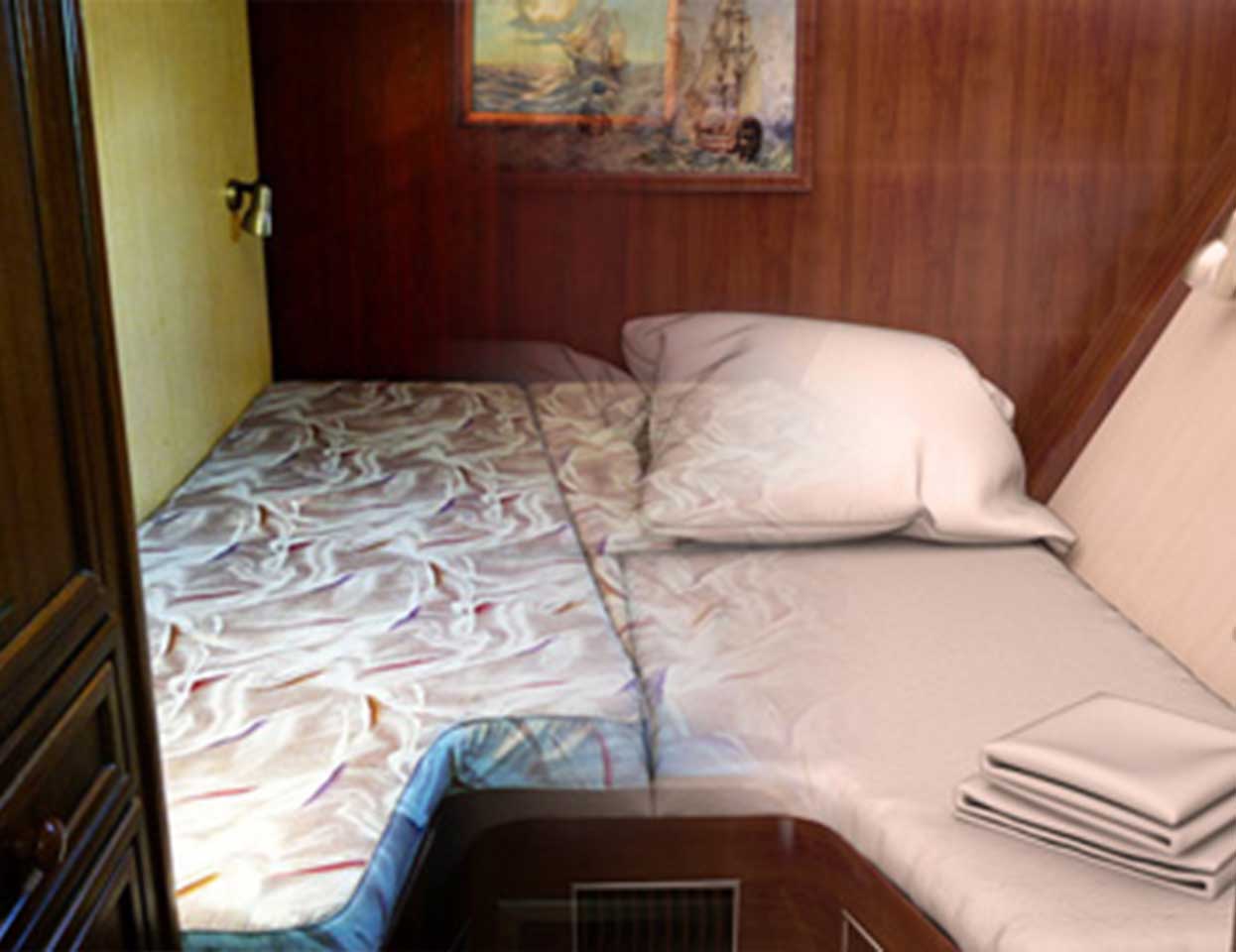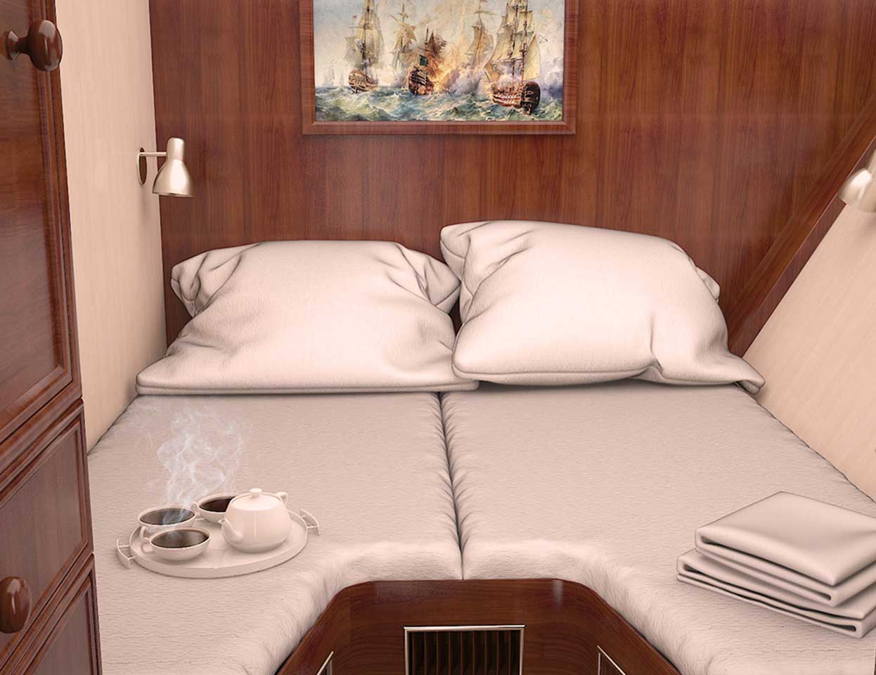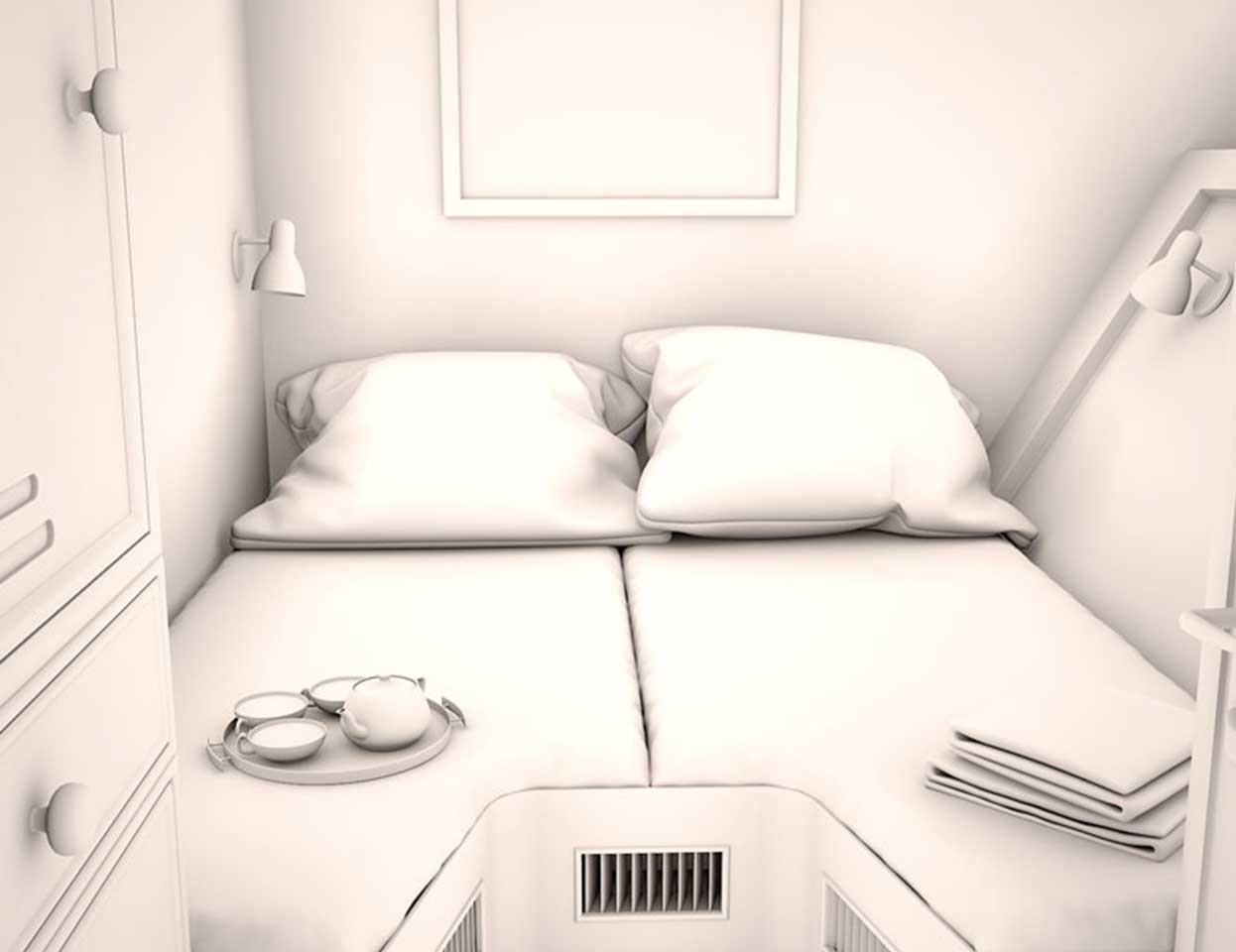 Wizualizacja kabiny jachtu wykonana na zlecenie ... człowieka pracującego w tej samej firmie, zajmującego się równie wynajmem jachtów (nie pamiętam całej historii). Drugie zdjęcie obrazuje efekt przed i po - założeniem projektu było upiększenie przesłanego zdjęcia. Okazało się, że proście zrobić wizualizację, niż męczyć się z obróbką zdjęcia. Model wykonany w 3ds max, postprodukca w Adobe Photoshop.